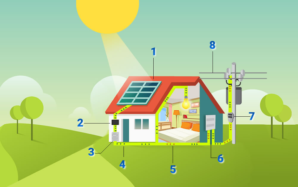 Converte toda a energia elétrica contínua produzida pelos painéis em energia elétrica alternada (CA) para consumo na residência e exportação para a rede